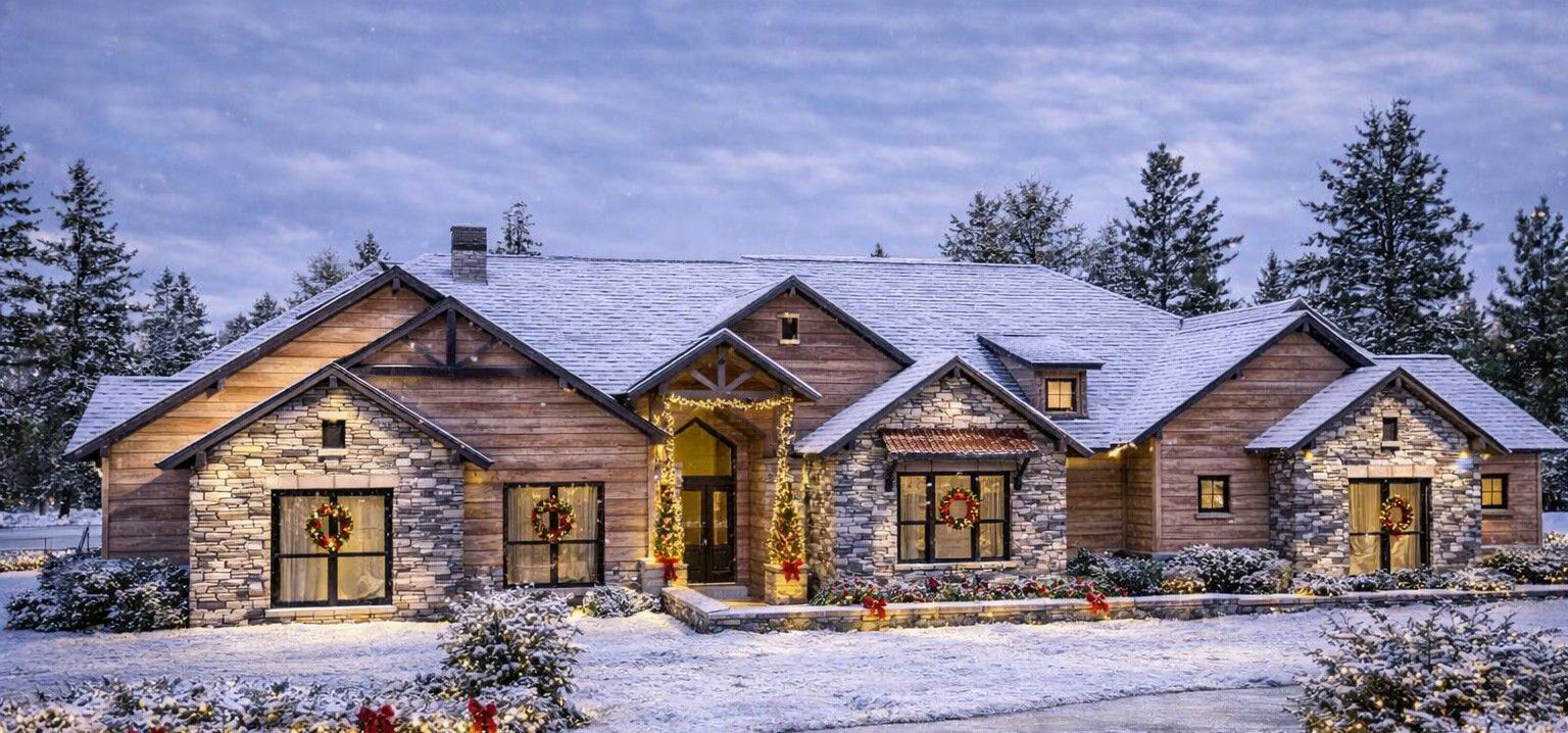 From the street, the exterior evokes classic mountain Craftsman appeal with a mix of natural materials, broad rooflines, large windows that capture views, and robust structural elements.