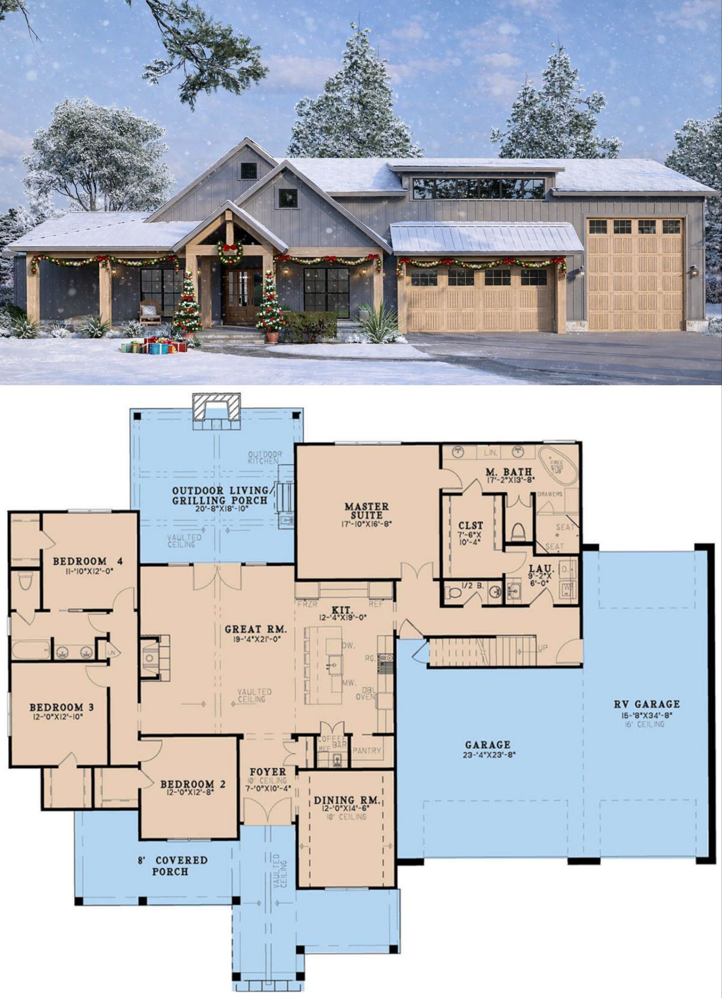 From the outside, this design makes a confident statement with its straightforward barndominium profile, clean rooflines, and balanced proportions. The exterior feels sturdy and timeless, ideal for rural settings, wide suburban lots, or anyone who loves the honest charm of barn-inspired architecture.