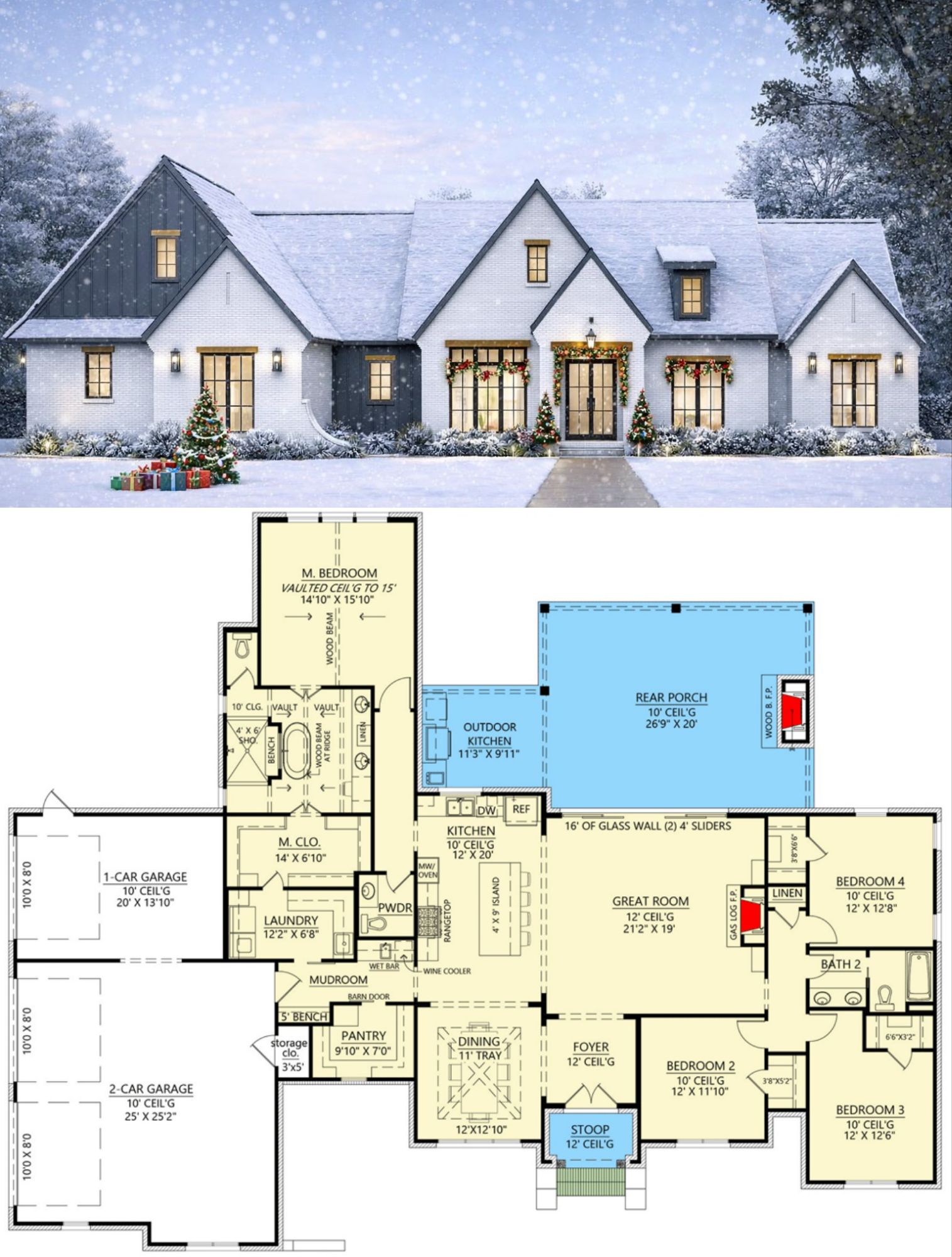 What makes this modern French country home stand out is its balance. The exterior delivers timeless elegance, while the interior layout supports modern lifestyles with open living, private retreats, and practical everyday flow. The private master wing adds a sense of luxury without excess, and the well-planned secondary bedrooms keep the home flexible for years to come.
