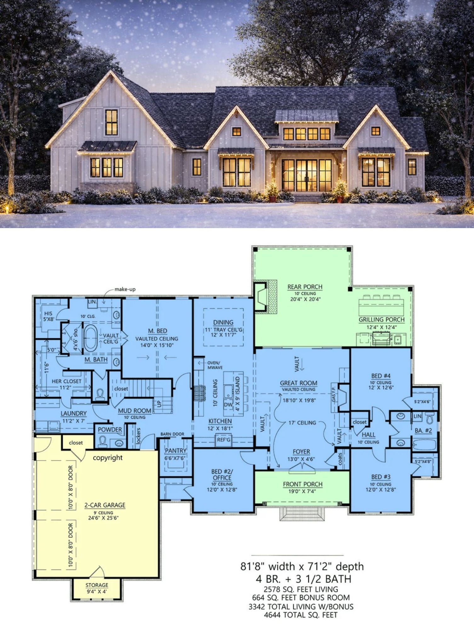 Overall, Plan 41481 blends classic farmhouse style with modern conveniences and flexible spaces — making it a home suited for both daily living and memorable moments with family and friends.
