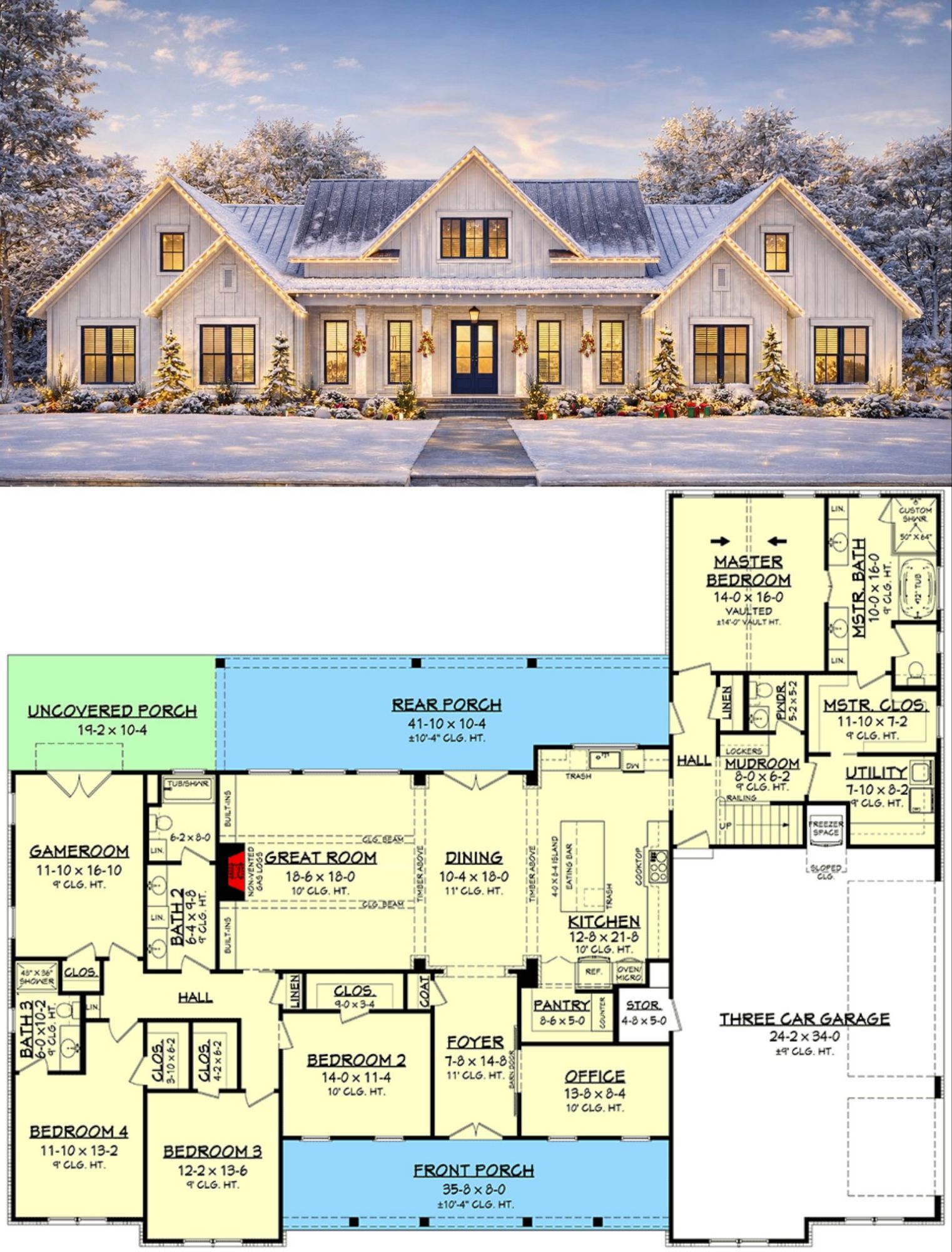 It combines modern farmhouse charm with practical spaces like a large game room and a bonus room over the garage — ideal for families, hosting guests, or flexible living needs.
