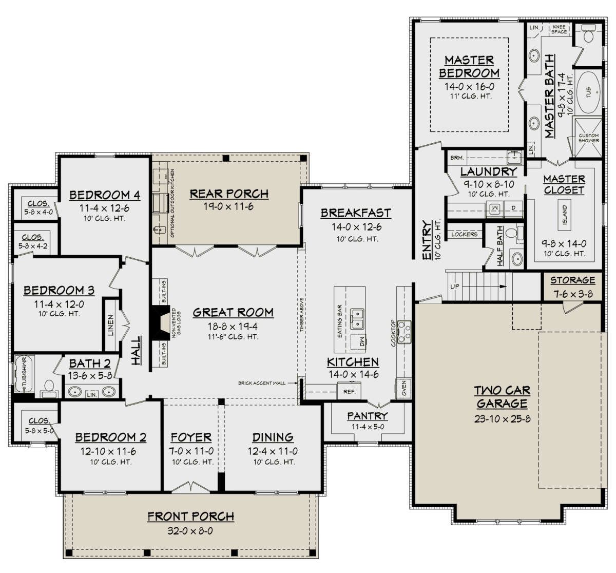 Outdoor living is a notable feature of this design. The expansive covered front porch invites relaxed seating and enjoyable moments with neighbors or family. At the rear, a covered porch / patio area expands your usable living space outdoors — perfect for alfresco dining, lazy weekend afternoons, or evening relaxation beneath the stars. These outdoor zones enhance everyday enjoyment and create seamless indoor-outdoor connections.