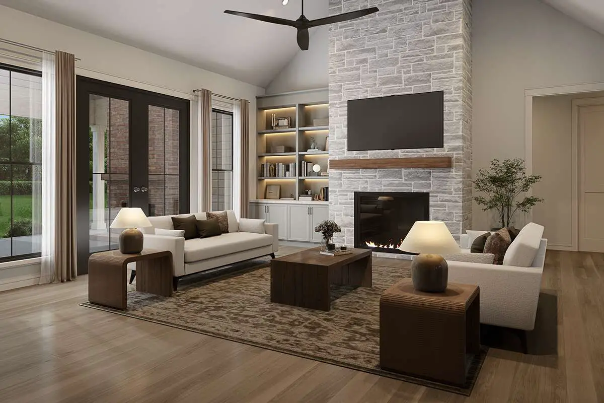 The generous porches and outdoor fireplace extend your living into the outdoors, turning nice weather into usable living space and creating natural zones for relaxation, play, or dining al fresco. 19