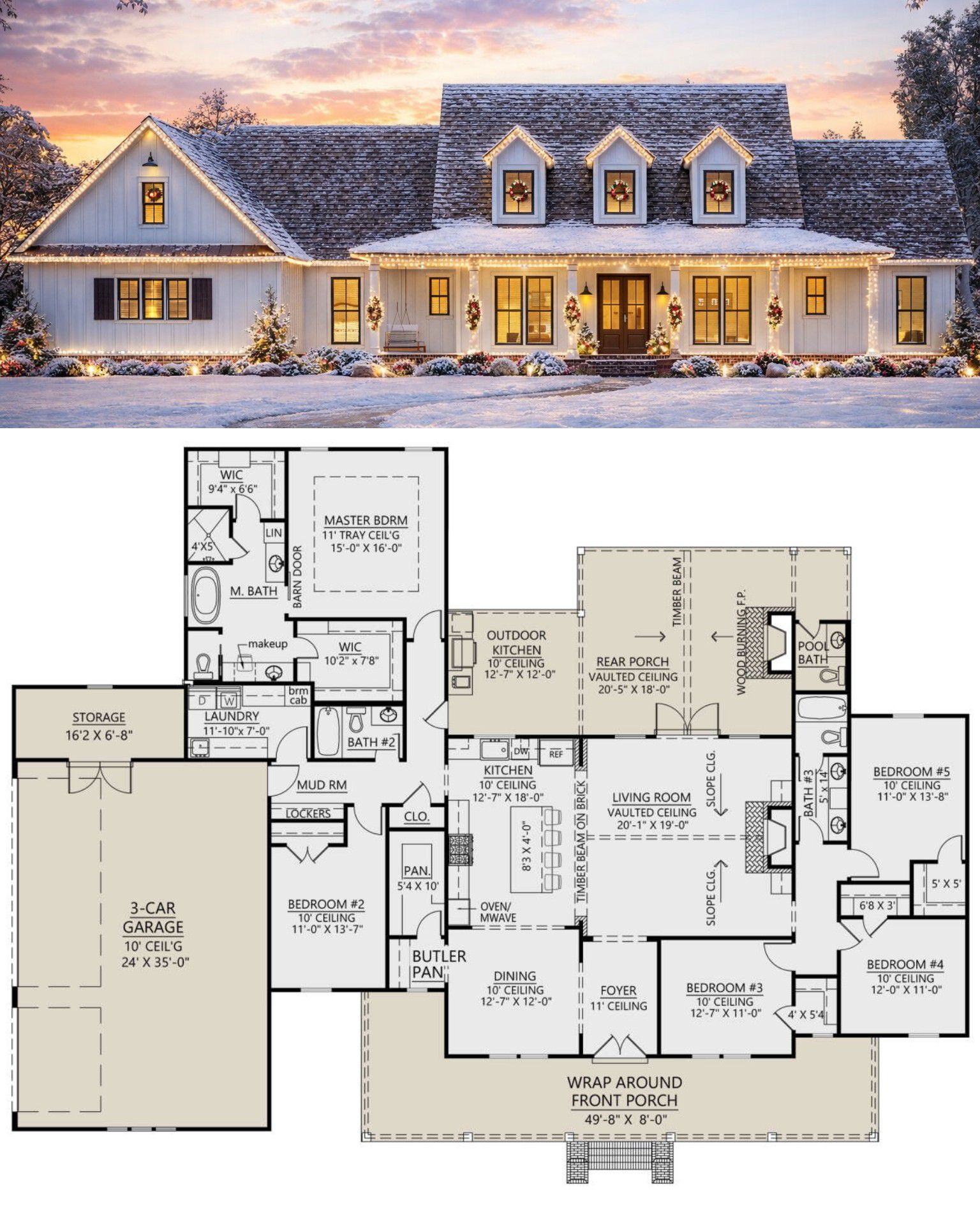 With five bedrooms, generous living space, and a design that balances communal and private areas, this modern farmhouse plan supports both everyday life and special occasions. Its classic exterior, wrap-around porch, and thoughtful interior layout make it a home that functions beautifully and looks timeless for years to come. 21