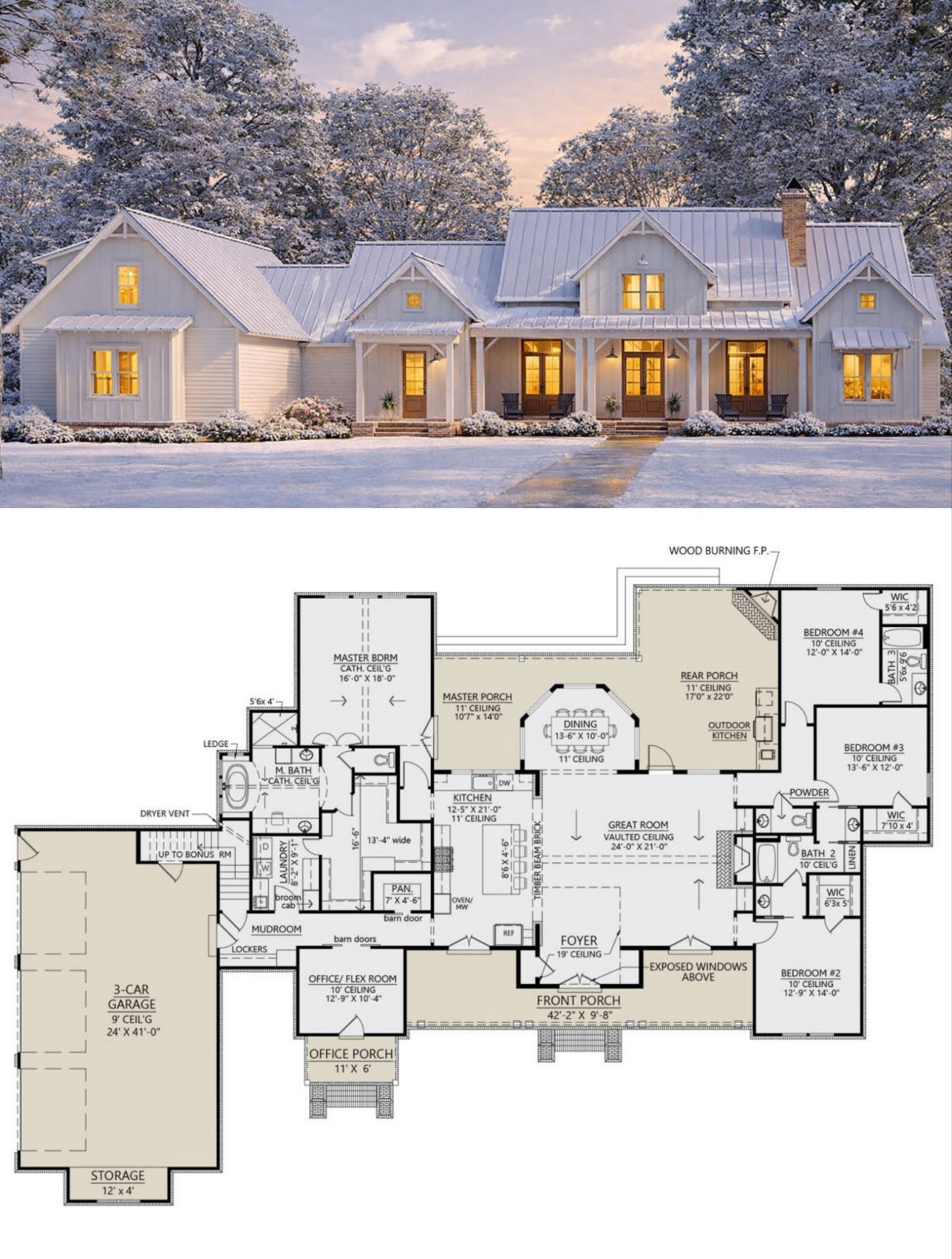 It blends classic farmhouse charm with thoughtful modern details, like a vaulted great room with abundant natural light, open yet purposeful living zones, private bedroom wings, and an extra bonus room above the garage for future needs.0