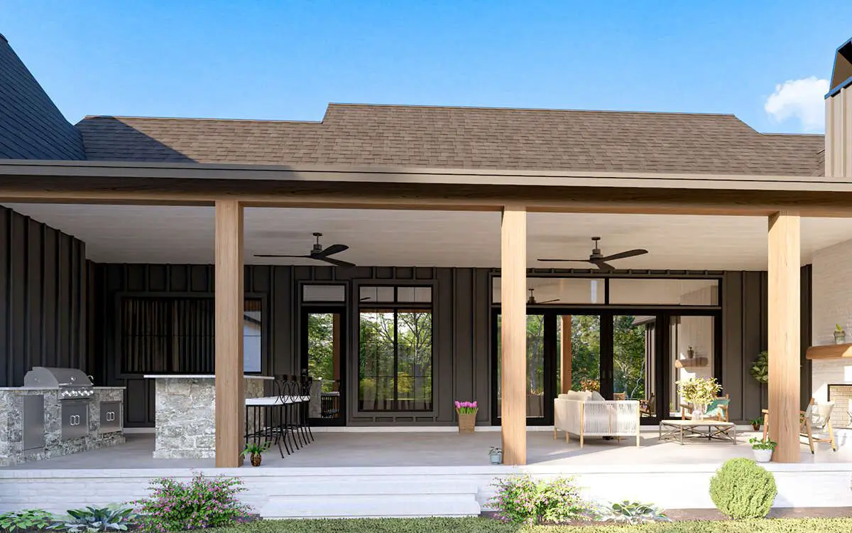 This farmhouse plan is crafted for modern living with space to entertain, work, and relax. The open main living spaces connect easily for daily interaction, while the split-bedroom layout and bonus room support separate zones for privacy and focused activity. Abundant porch and patio areas extend your usable square footage outdoors, enhancing everyday enjoyment and making it easy to host family gatherings or casual evenings under the sky.10