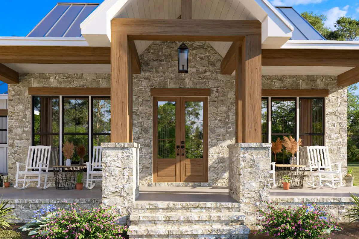 This modern farmhouse is ideal for homeowners who want an efficient, comfortable layout that combines open gathering zones with sensible private spaces. The connected living, dining, and kitchen areas support casual everyday living and entertaining, while the bedroom placement provides quiet retreats. Covered porches invite you outdoors and expand usable space, making this home feel fresh and welcoming. With thoughtful storage and flexible room use, it adapts easily to family life, guests, or changing needs over time. 10