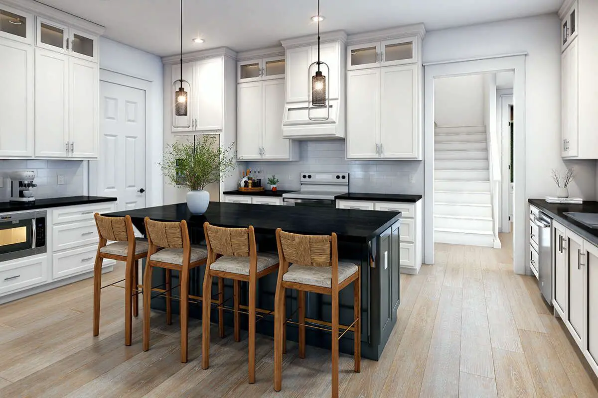 The kitchen is designed for both everyday meal prep and entertaining, with abundant counter space, a central island for prep and casual seating, and easy access to the dining area.