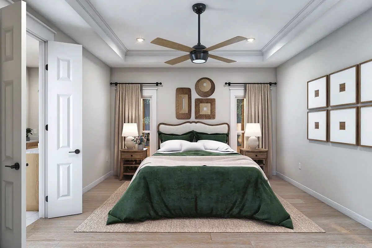 Three additional bedrooms provide flexible space for family members, guests, or alternative uses such as a home office or hobby room. With three full bathrooms plus a half bath, this plan helps keep morning routines flowing smoothly and guest stays comfortable. Thoughtful placement of bedroom spaces supports privacy without isolating rooms from the home’s natural flow.