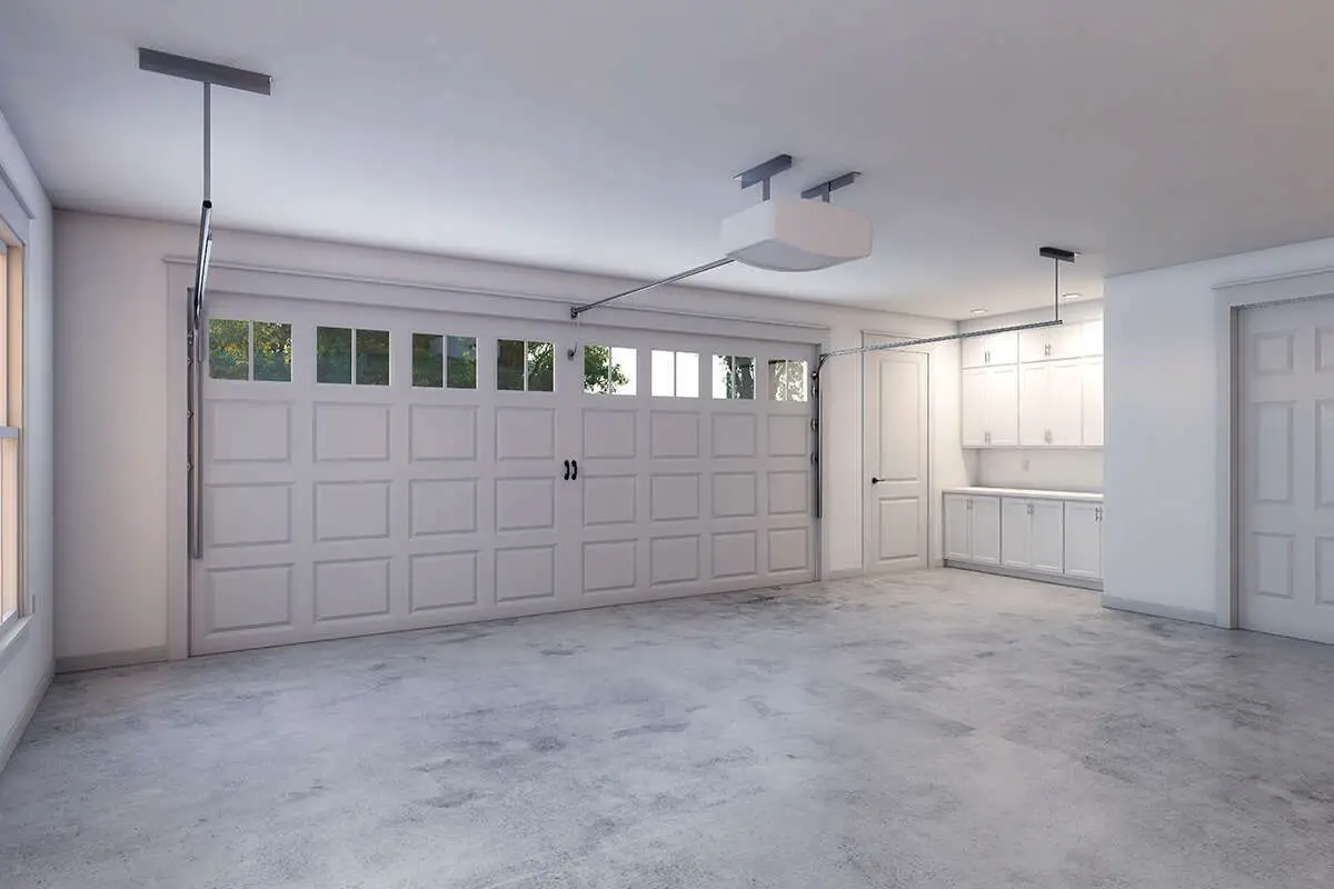 The attached **two-car side-entry garage** provides secure parking and additional storage space for vehicles, tools, and seasonal gear. Its placement maintains a clean front elevation and convenient access to the main living spaces. Main area ceilings are approximately **9–10 feet** high, contributing to the airy feel throughout the first floor.
