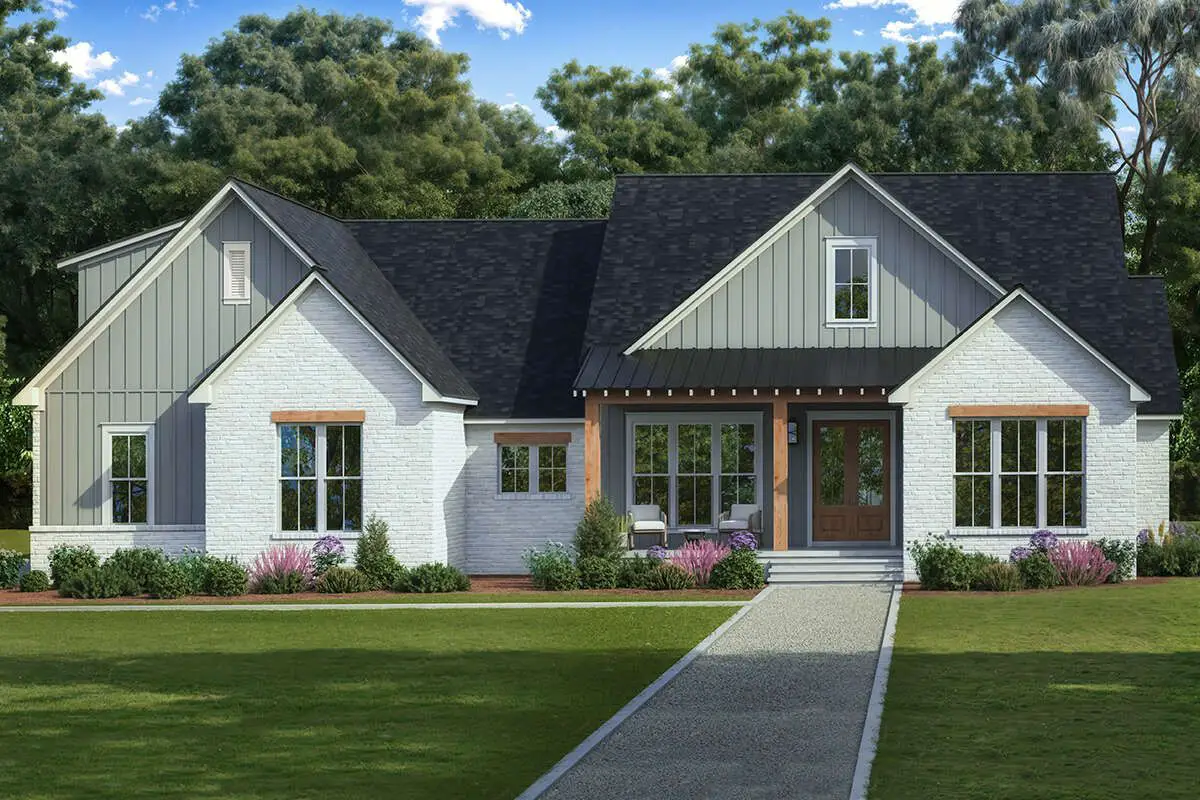 This modern farmhouse plan is crafted for families who value connected living spaces, outdoor interaction, and private retreats. The open layout encourages everyday flow and clear sightlines between gathering zones, while bedroom placement supports privacy when it matters most. Covered porch areas extend your living space outdoors and make it easy to enjoy fresh air and social time year-round. Thoughtful storage, a dedicated laundry area, and practical transitions help keep daily routines organized and life feeling balanced.