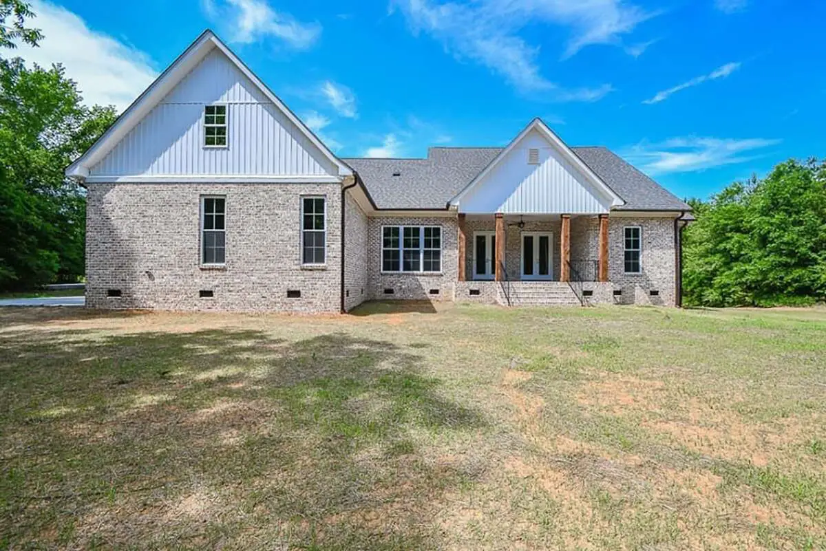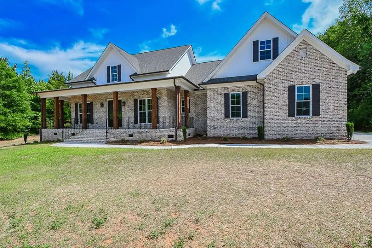 The exterior of this home brings classic country charm with balanced proportions, a welcoming covered front porch, and a thoughtfully arranged façade.